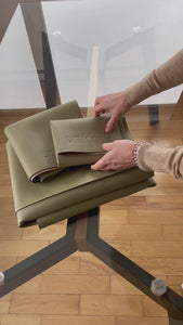 Hunter + Tan is so versatile color that will add a touch of wildness to your decor. Our leather mat are made in soft 100% vegan leather that are easy to fold and practical to use. You can use it in your baby station as well as on the go. Our mats are waterproof and can be washed only using a wet cloth.