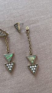 Crystal Triangle Stud Chain Jacket Earrings
